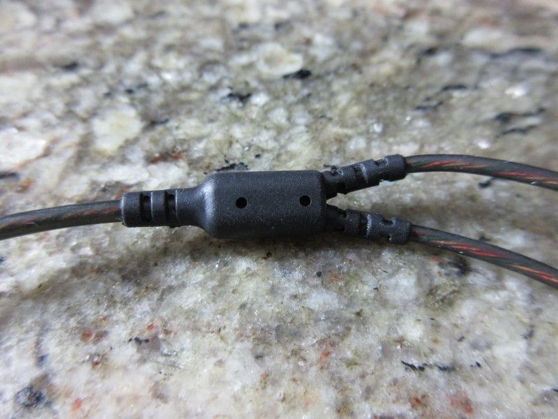 The control unit is a bit bulky and adds some weight to the cable while serving as y-splitter. Also, the cable from the control unit to 3.5mm gold plated angled connector is thick, and L/R cables going to earpieces are also on a thicker side. Earpieces are big enough to house two dynamic drivers, have a plastic housing, and a durable build that can withstand some abuse. They have a clear L/R marking, multi-venting for expanded open sound, and a short strain relief which is not a problem due to a thickness of the cable/shielding attached to earpieces.
